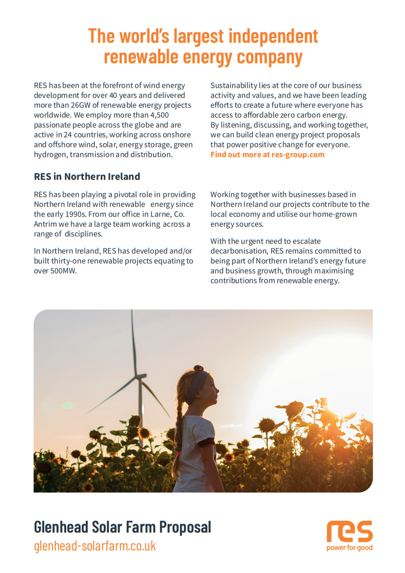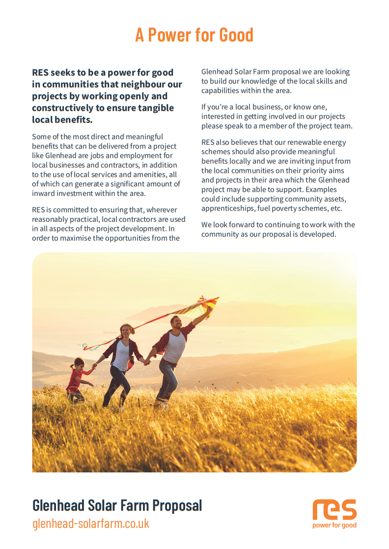 To advertise the exhibition and provide more information, we sent out a newsletter to addresses and community groups closest to Glenhead Solar Farm. A copy of this newsletter can be viewed here.